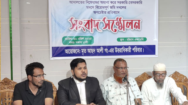 লিখিত বক্তব্যে তিনি বলেন, ১৯০৮ সাল থেকে আরএস রেকর্ড ও ক্রয়সূত্রে তারা বাকলিয়া থানাধীন নোমান কলেজসংলগ্ন উক্ত জমির বৈধ মালিক ও দখলদার। কিন্তু বি.এস. জরিপে ভুল রেকর্ড হওয়ায় তারা ২০১৯ সালে আদালতে মামলা করেন, যা এখনো বিচারাধীন। হাইকোর্ট থেকে একাধিকবার ‘স্থিতি অবস্থা’ (ংঃধঃঁং য়ঁড়) আদেশ পাওয়া সত্ত্বেও সম্প্রতি কিছু কুচক্রী মহল জমি দখলের পাঁয়তারা চালাচ্ছে।