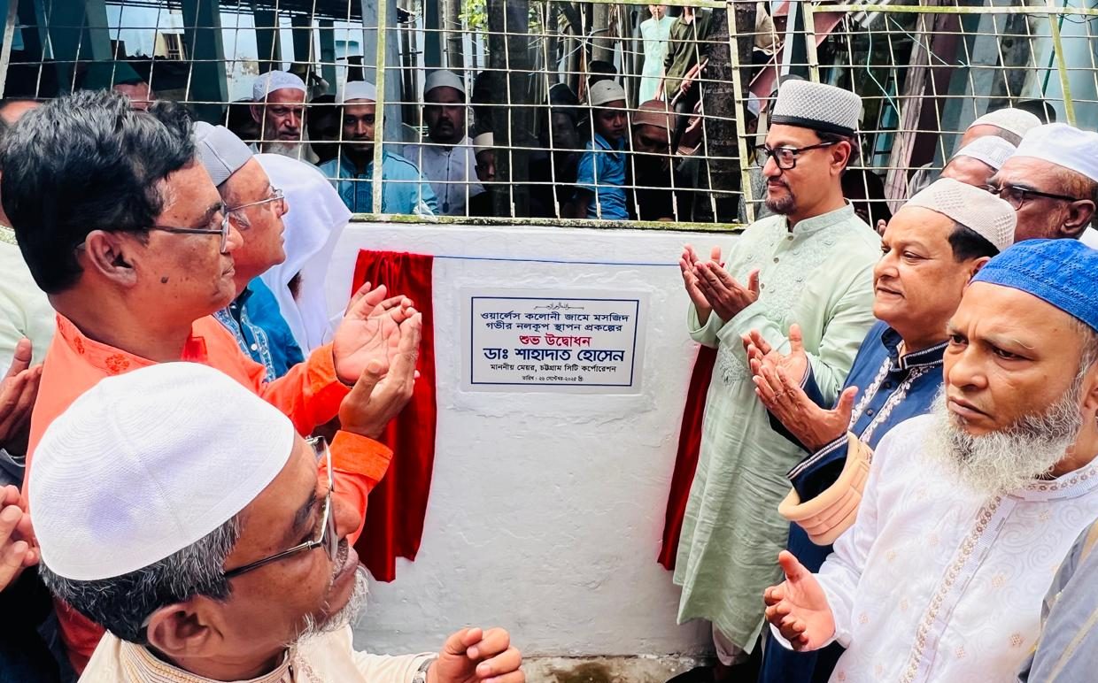 শুক্রবার দুপুরে চট্টগ্রাম সিটি কর্পোরেশন কর্তৃক ওয়ার্লেস ঝাউতলা কলোনী জামে মসজিদে গভীর নলকূপ স্থাপন প্রকল্পের কাজের উদ্বোধন করেছেন চট্টগ্রাম সিটি কর্পোরেশনের মেয়র ডা. শাহাদাত হোসেন।