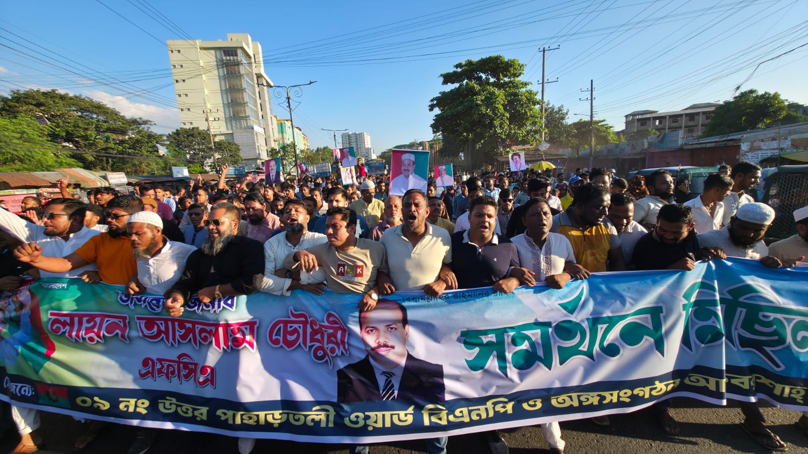 নিষিদ্ধ সংগঠন স্বৈরাচারী আওয়ামী লীগ কর্তৃক নৈরাজ্যের প্রতিবাদে ও ত্রয়োদশ জাতীয় সংসদ নিবার্চনে চট্টগ্রাম-৪ সংসদীয় আসনে বিএনপির সাবেক যুগ্ম মহাসচিব আসলাম চৌধুরীকে চুড়ান্ত মনোনয়ন দেওয়ার দাবীতে শুক্রবার (১৪ নভেম্বর) বিকালে ফিরোজশাহ মিনার থেকে বিক্ষোভ মিছিল করেছেন চট্টগ্রাম মহানগরের আওতাধীন ৯নং উত্তর পাহাড়তলী ওয়ার্ড বিএনপি, অঙ্গ ও সহযোগী সংগঠনসমূহের নেতাকর্মীরা।