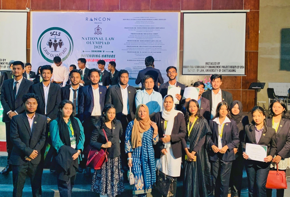 চট্টগ্রাম বিশ্ববিদ্যালয়ের সোসাইটি ফর ক্রিটিক্যাল লিগ্যাল স্টাডিজ (এসসিএলএস) এর উদ্যোগে আয়োজিত “ল অলিম্পিয়াড সিজন ৫.০”—এ অংশগ্রহণ করে ‘বেস্ট রিসার্চ পেপার অ্যাওয়ার্ড’ অর্জন করেছে সাউদার্ন ইউনিভার্সিটি বাংলাদেশ—এর আইন বিভাগের কৃতি শিক্ষার্থীরা।