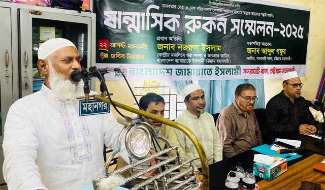 শুক্রবার সকাল ৮টায় বাংলাদেশ জামায়াতে ইসলামী চট্টগ্রাম মহানগরীর সদরঘাট থানার উদ্যোগে থানার কার্যালয়ে ষান্মাসিক রুকন সম্মেলনে প্রধান অতিথির বক্তব্যে তিনি এই কথা বলেন।