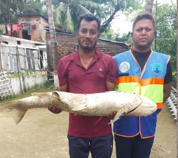 স্থানীয়রা নদীতে মাছটিকে ভাসতে দেখে নৌ পুলিশের অস্থায়ী ফাঁড়িকে খবর দেন। পরে নৌ পুলিশ ফাঁড়ির এএসআই রমজান আলী ও নদী পাহারাদারদের সহযোগিতায় মাছটি উদ্ধার করে ক্যাম্পে নেওয়া হয়।