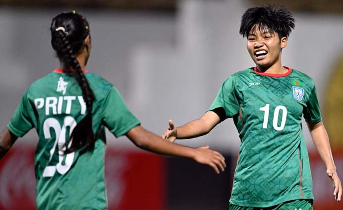 সাফ অনূর্ধ-১৭ নারী চ্যাম্পিয়নশিপে জয়ের ধারায় ফিরেছে বাংলাদেশ। আগের ম্যাচে ভারতের কাছে হেরে নেপালের বিপক্ষে বড় জয় তুলে নিয়েছে অর্পিতা বিশ্বাসের দল। নিজেদের তৃতীয় ম্যাচে বাংলাদেশ ৩-০ গোলে হারিয়েছে নেপালকে। প্রথমার্ধে ২-০ গোলে এগিয়ে ছিল বাংলাদেশ।