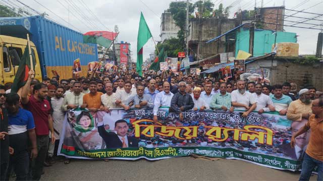 সমাবেশ শেষে বিভিন্ন সাজে, ব্যানার, ফেস্টুনে সজ্জিত বিজয় র্যালীটি পৌর সদরের উত্তর বাজারে গিয়ে শেষ হয়।
