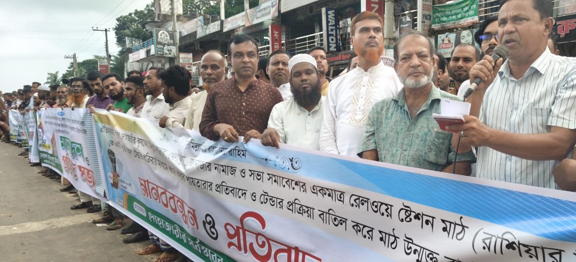 চট্টগ্রামের চন্দনাইশ উপজেলার দোহাজারী পৌরসভায় ঐতিহ্যবাহী রেলওয়ে স্টেশন মাঠ (রাশিয়ার ফিল্ড) কে টেন্ডার প্রক্রিয়ার মাধ্যমে ব্যক্তি মালিকানায় ব্যবসায়ীদের হাতে তুলে দেওয়ার প্রতিবাদে চট্টগ্রাম-কক্সবাজার মহাসড়কের দোহাজারী পৌরসদরে ঘন্টাব্যাপী মানববন্ধন ও প্রতিবাদ সমাবেশ অনুষ্ঠিত হয়।