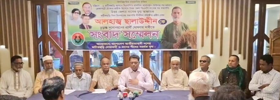 চট্টগ্রাম-২ (ফটিকছড়ি) আসনে বাংলাদেশ জাতীয়তাবাদী দল বিএনপি ঘোষিত প্রাথমিক মনোনয়নকে কেন্দ্র করে সৃষ্ট বিভাজন পরিস্থিতি নিরসন এবং দলের সর্বস্তরের ঐক্য রক্ষার স্বার্থে প্রবীণ নেতা আলহাজ্ব ছালাহ উদ্দীনকে চূড়ান্ত মনোনয়নে দলীয় প্রার্থী হিসেবে ঘোষণা করার দাবিতে সংবাদ সম্মেলন অনুষ্ঠিত হয়েছে।