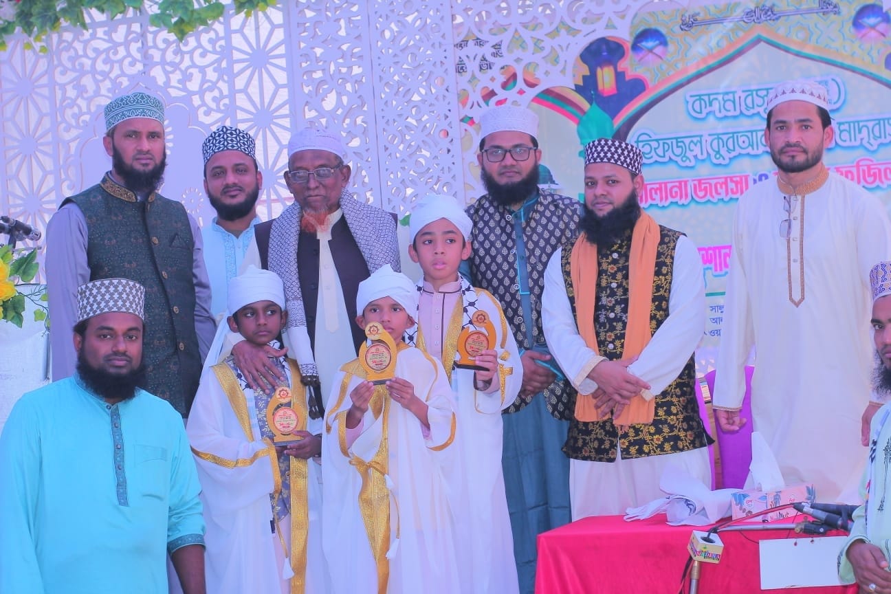মাহফিল শেষে হেফজ সমাপনকারী মাদরাসার তিন ছাত্র মোহাম্মদ যায়েদ বিন ইলিয়াস, মোহাম্মদ জিহাদুল ইসলাম ও মোহাম্মদ সাবিতকে অতিথিবৃন্দ দস্তারবন্দী বা পাগড়ী পরিয়ে দেন।