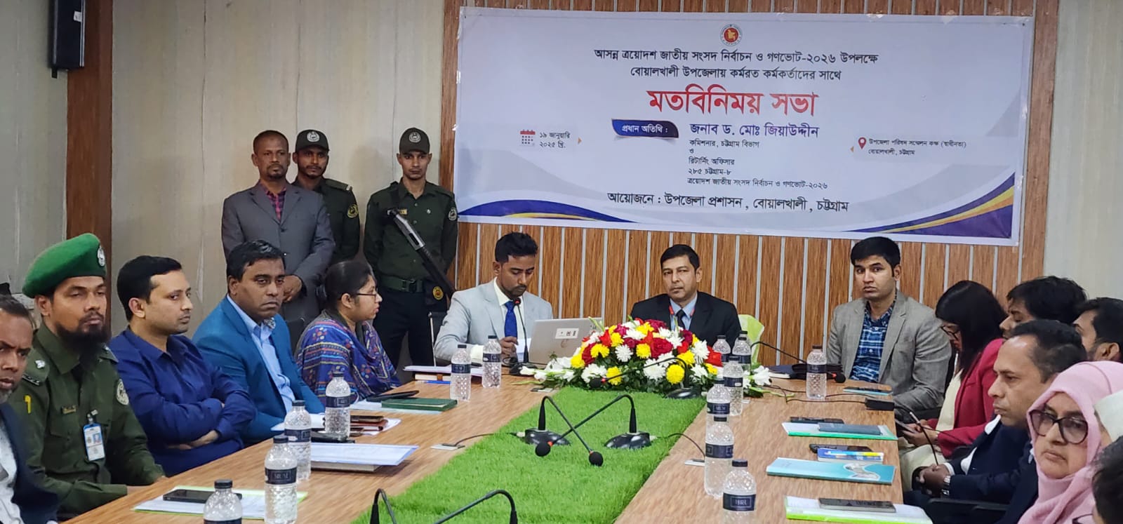 চট্টগ্রামের বোয়ালখালী উপজেলায় আসন্ন ত্রয়োদশ জাতীয় সংসদ নির্বাচন ও গণভোট উপলক্ষে কর্মরত কর্মকর্তাদের সাথে মতবিনিময় সভা অনুষ্ঠিত হয়েছে।